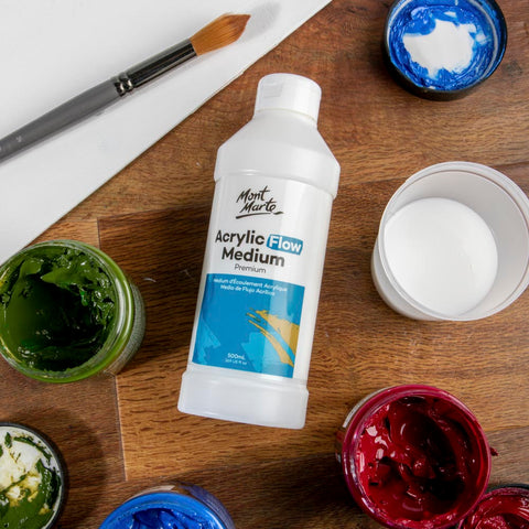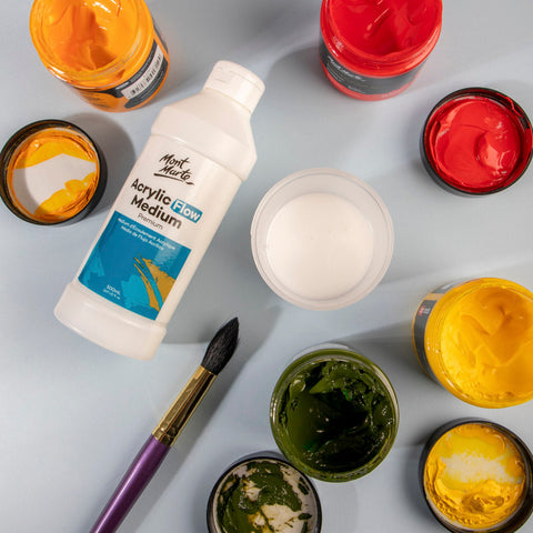 Mont Marte Premium Acrylic Flow Medium increases the translucency and flow of your acrylic paints without losing their colour intensity. This highly versatile acrylic pouring medium can be used to thin acrylic paints and mediums, or to dilute binders.