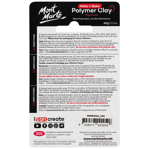 With our Make n Bake Polymer Clay, the creative possibilities are endless! This easy-to-use clay is malleable and can be hardened in a standard household oven. You'll find our clay is soft, smooth and blendable, so that you can create new clean and vibrant colours. It also holds form and adheres easily to porous and non-porous materials making it ideal for any sculpture work. Once, hardened this oven bake clay can be drilled, sanded, cut, painted and even cleaned with warm soapy water. It's ideal for use in press moulds, pattern making, figure and doll modelling, canes, beading, jewellery and many other sculptural projects. So, whatever you dream up, this super pliable coloured polymer clay will help bring your creation to life!