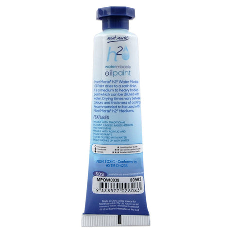 Mont Marte H20 Water Mixable Oil Paint dries to a satin finish. It is a medium to heavy bodied paint which can be diluted with water. Drying times vary between colours and thickness of coatings.