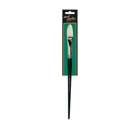 Holds paint extremely well, allowing bold strokes of colour. Coarseness is perfect for applying oil paint. Tip slightly curved/round producing soft, tapered strokes. Useful for blending and soft edges.