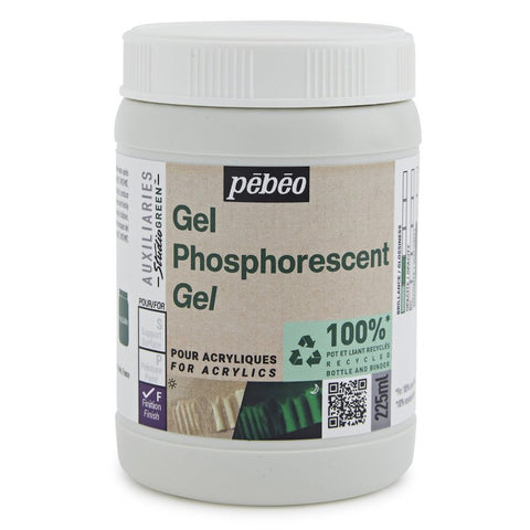 Phosphorescent gel to produce a glow in the dark effect. Translucent, satin matt finish after drying. For best results, apply alone and thickly with a painting knife.